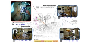 We present Ego-Exo4D, a diverse, large-scale multimodal multiview video dataset and benchmark challenge. Ego-Exo4D centers around simultaneously-captured egocentric and exocentric video of skilled human activities (e.g., sports, music, dance, bike repair). More than 800 participants from 13 cities worldwide performed these activities in 131 different natural scene contexts, yielding long-form captures from 1 to 42 minutes each and 1,422 hours of video combined. The multimodal nature of the dataset is unprecedented: the video is accompanied by multichannel audio, eye gaze, 3D point clouds, camera poses, IMU, and multiple paired language descriptions – including a novel `expert commentary’ done by coaches and teachers and tailored to the skilled-activity domain. To push the frontier of first-person video understanding of skilled human activity, we also present a suite of benchmark tasks and their annotations, including fine-grained activity understanding, proficiency estimation, cross-view translation, and 3D hand/body pose. All resources will be open sourced to fuel new research in the community.